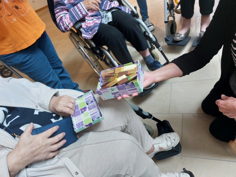 Die Schnitzeljagd endete in der Einrichtung, wo die letzte Frage erfolgreich gelöst und der Schatz gehoben wurde: Schokolade für alle Teilnehmenden – eine kleine, aber süße Belohnung für einen gelungenen Vormittag.